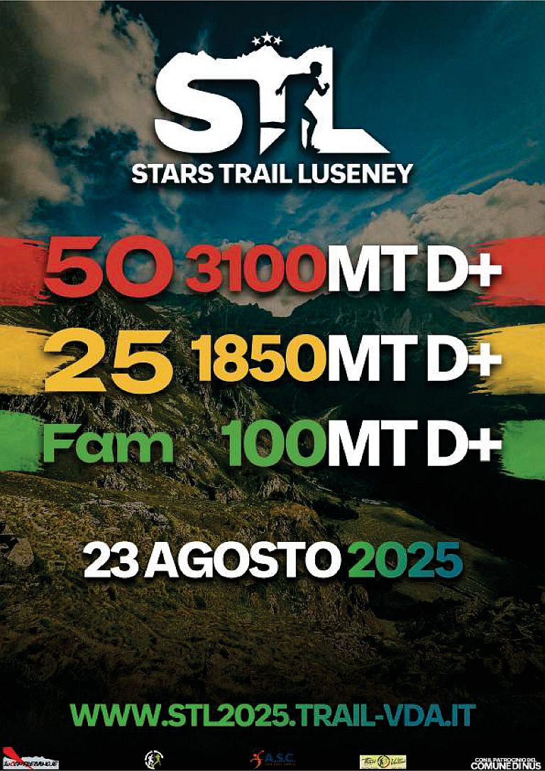 Il Stars Trail Luseney sarà una manifestazione sportiva di trail-running in grado di unire attività come sport, natura e cultura, offrendo un’esperienza unica nella magnifica e suggestiva cornice montana della Valle di Saint-Barthélemy, del comune di Nus, situata in Valle d’Aosta. Programmata per il 23 agosto 2025, questa competizione propone 2 diversi percorsi tecnici e impegnativi, immersi in paesaggi incontaminati e che toccheranno punti di grande rilievo storico culturale. Tutto ciò sarà affiancato da un insieme di attività complementari al fine di arricchire l’esperienza dei partecipanti e del pubblico.