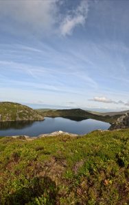 Qui i monti sono molto bassi rispetto ai nostri (a malapena si arriva attorno ai 1000m) e sembrano quasi degli enormi cumuli di massi dove tracce di sentiero si smarcano tra le pietraie. Man mano che si scende di quota, i ripidi pendii diventano erbosi, i sentieri si snodano tra un laghetto e un altro su distese pratose, un saliscendi continuo dove sono stati costruiti lunghissimi recinti in pietra caratterizzati da tipiche scalette di legno per passare da una parte all’altra. Fortuna che c’erano loro (le pecore) a tenermi compagnia quando mi trovavo da solo immerso in questo bellissimo ambiente, le pecore qui sono ovunque, non importa se ti trovi vicino a qualche paesino o sperduto per qualche brughiera.