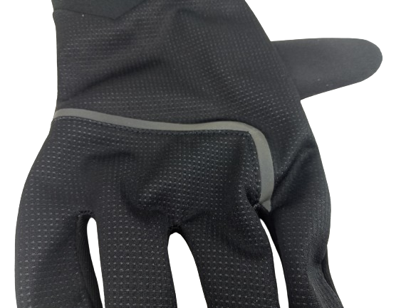 - Il tessuto del palmo è in tessuto WindWall™, 92% poliestere riciclato, 8% elastan spandex con stampa antiscivolo in silicone, per migliorare la presa sugli oggetti, specie in situazioni umide.