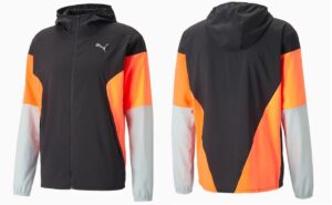 La Puma Run Lightweight Jacket è una giacca da corsa con cappuccio dotato di bordo elasticizzato, che veste aderente sulla testa col collarino che finisce morbido sotto il mento. Ha la chiusura a zip a tutta lunghezza, polsini e costine elasticizzati e due ampie tasche sui fianchi.