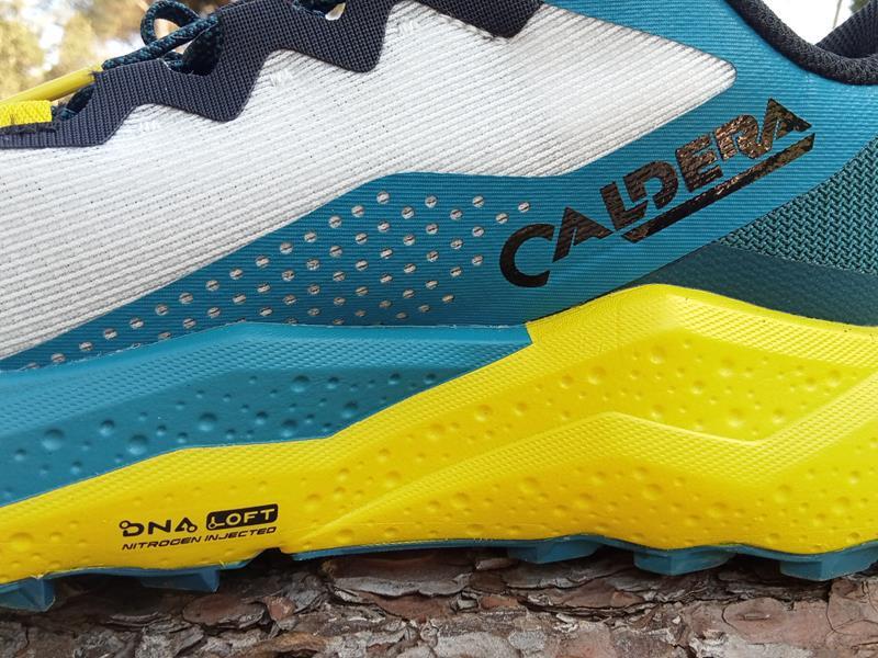 L’intersuola della Brooks Caldera 8 è un bel “gommone” alto ed ampio, fatto con gomma azotata DNA Loft 3.