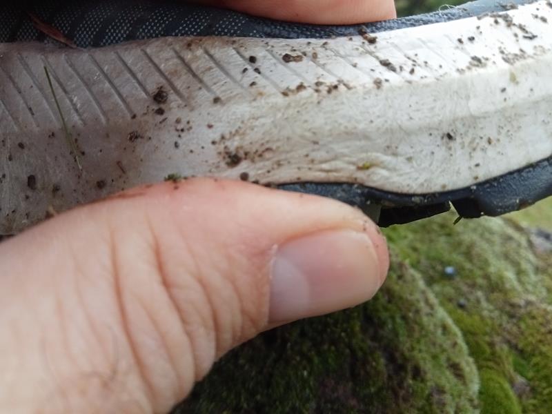 I tasselli grandi, ben più distanziati e più profondi  – anche se di solo mezzo millimetro – rispetto ad altri modelli performanti, migliorano la tenuta su fondi morbidi – che siano friabili o fangosi, o coperti da sporcizia melmosa – anche per chi non è un atleta performante