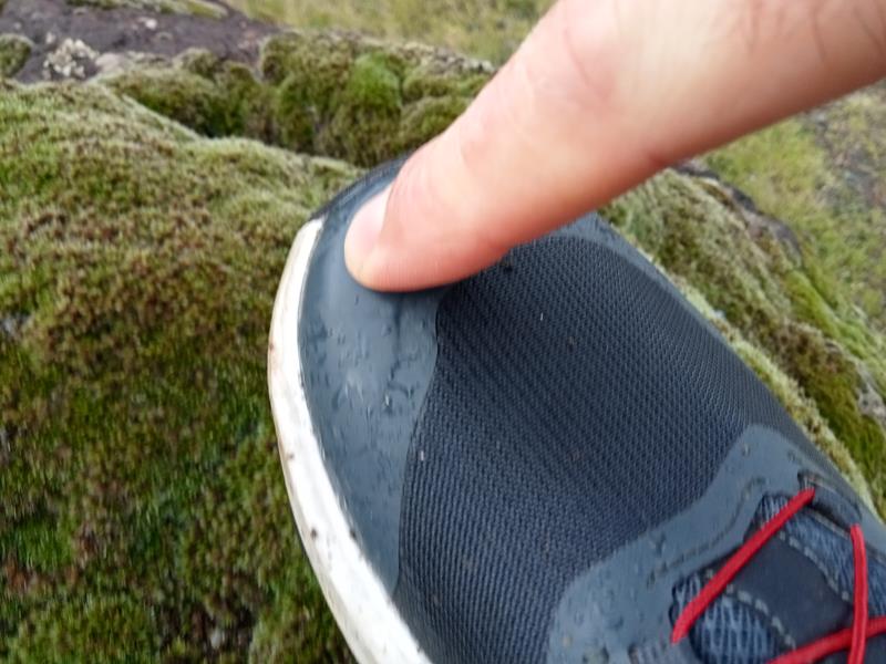 Così traspirante che calzata a piede nudo, nelle prime ore del mattino, con 5°c, ho sentito il freddo entrare dentro a congelarmi la zona sopra le dita dei piedi!