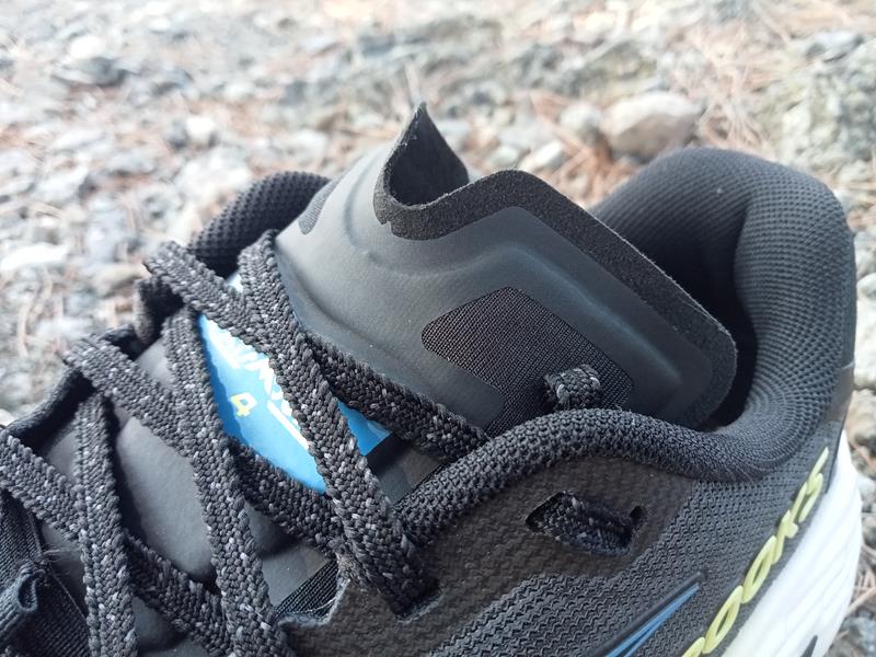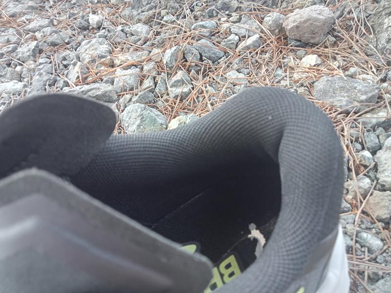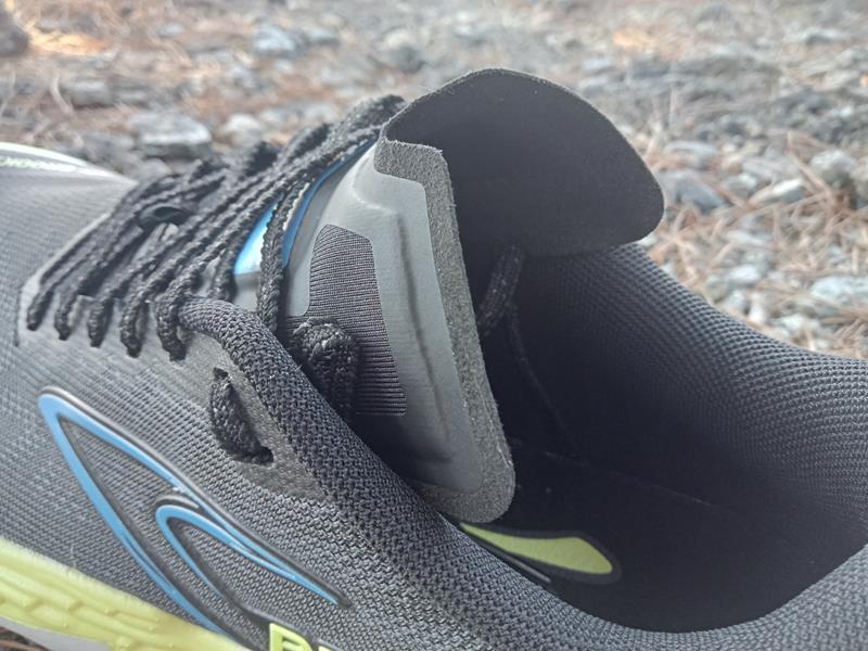 Il contrafforte tallonare è ampio il giusto, con conchiglia rigida interna, ed abbondanti imbottiture – forse anche troppo- al collarino e al codino.