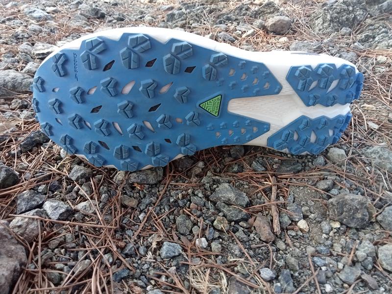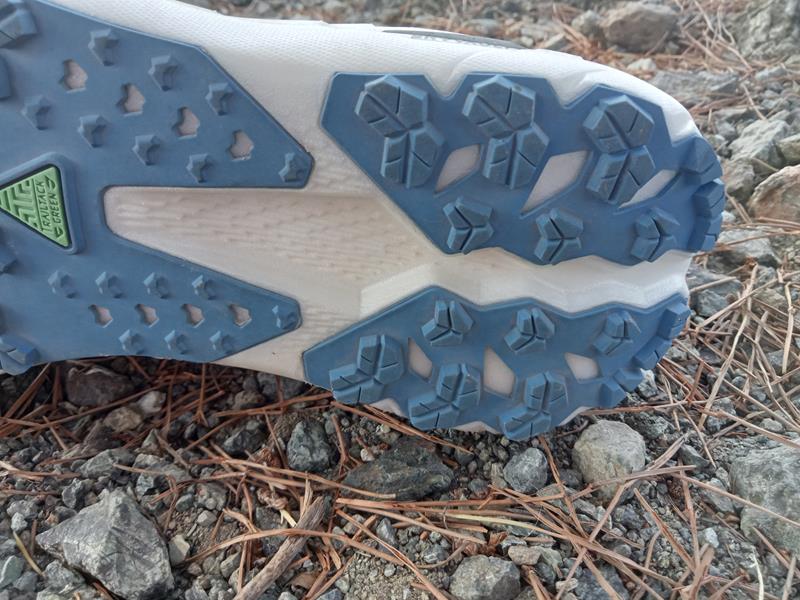 Questo maggior spessore dell’intersuola aumenta la protezione, ma diminuisce un po’ la capacità di percezione del fondo, e insieme alla piastra, contribuisce a diminuire la capacità torsionale delle scarpa.